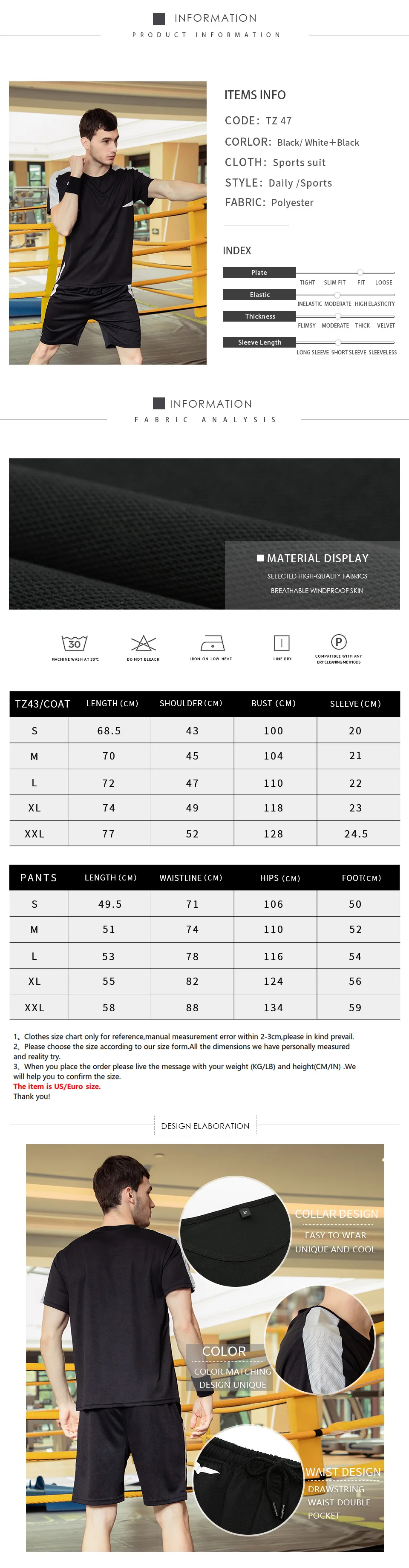 | Material Composition | Cotton-polyester-summer tracksuit men |